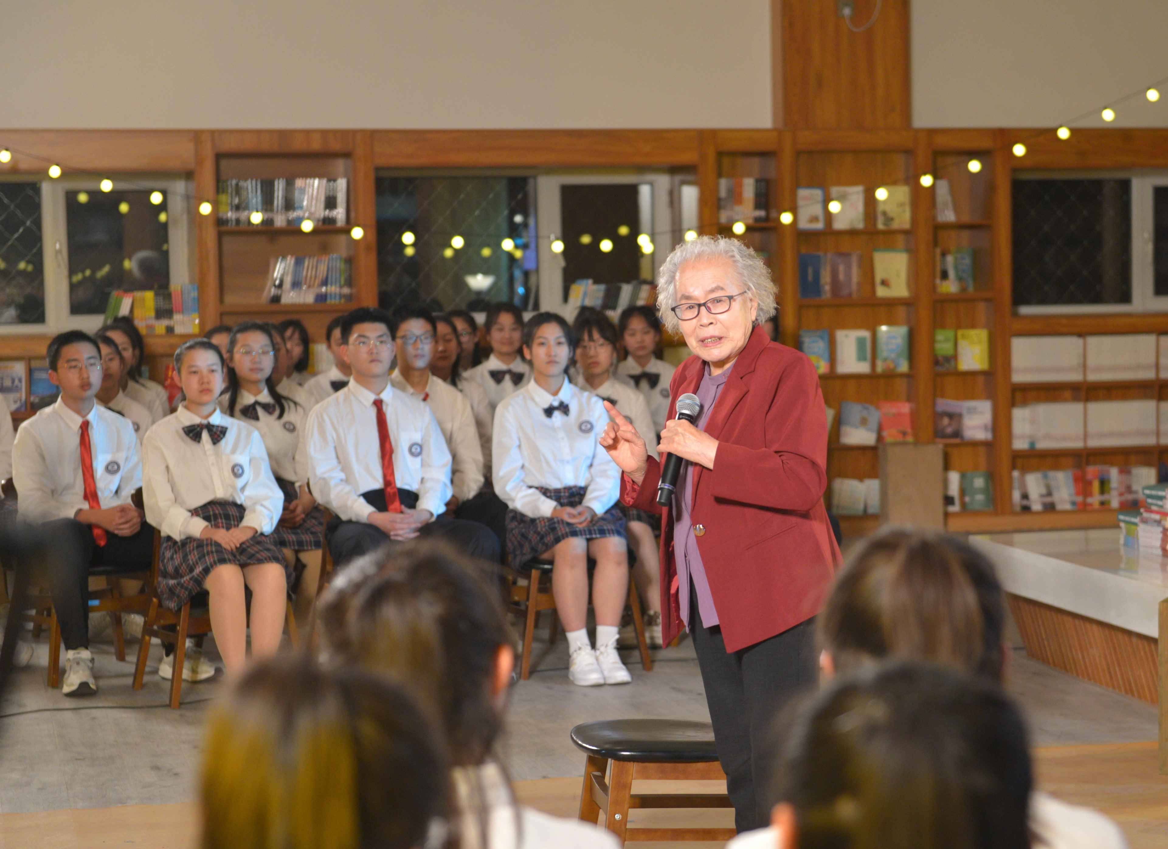在二中圖書(shū)館的(de)錄制(zhì)現(xiàn)場(chǎng),學校(xiào)特地(dì)邀請(qǐng)了(le)“六₽女(nǚ)上(shàng)壩”的(de)代表人(rén)物(wù)陳彥娴老(lǎo)人(rén)重回母校(xiào),為(wèi)同學們講述70年(nián)前發生(shēng)在塞罕壩的(de)動人(rén)故事(shì)。觀衆們被二中老(lǎo)前輩的(de)崇高(gāo)精神所感←染,受到(dào)了(le)一(yī)次心靈的(de)洗禮和(hé)精神的(de)震撼。