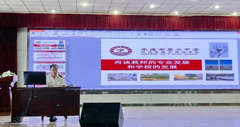 經過了(le)短(duǎn)暫、忙碌的(de)暑假,我們迎來(lái)了(le)新的(de)學期,為(wèi)了(le)使全校(xiào)教職工(gōng)不(bù) 忘初心、牢記使命,促進學校(xiào)教育教學工(gōng)作(zuò)盡快(kuài)步入新征程,8月®(yuè)17日(rì)上(shàng)午,承德二中在學校(xiào)報(bào)告廳隆重召開(kāi)2019-2020第一(yī)學期全體(tǐ)教職工(≥gōng)大(dà)會(huì)。會(huì)議(yì)由副校(xiào)長(cháng)馬欣慧主持。大(dà)會(huì)上(shàng),校(xiào)長(cháng)郭常森(sēn)為(wèi)全體(tǐ)教職工(gōng)做(zu'ò)了(le)"再談教師(shī)的(de)專業(yè)發展和(hé)學校(xiào)的(de)發展"的(de)專題報(bào)告。