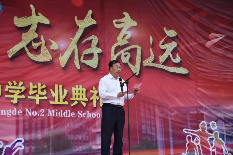 校(xiào)長(cháng)郭常森(sēn)代表承德二中對(duì)圓滿完成高(gāo)中學業(yè)的(de)每一(yī)位高(gāo)三學生(shēng)表示最熱(rè)烈的(de)祝∏賀,向辛勤工(gōng)作(zuò)的(de)老(lǎo)師(shī)們表示誠摯的(de)謝(xiè)意。
