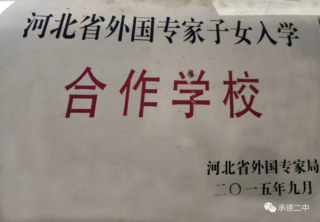 近(jìn)日(rì),河(hé)北(běi)省外(wài)專局為(wèi)我校(x↔iào)加挂"河(hé)北(běi)省外(wài)國(guó)專家(jiā)子(zǐ)女(nǚ)入學合作(zuò)學校(xiào)"校(xiào)牌。這←(zhè)是(shì)經過省外(wài)專局對(duì)我校(xiào)的(de)綜合衡量和(hé)評估,$考慮到(dào)學校(xiào)的(de)辦學理(lǐ)念、辦學條件(jiàn)、教學管理(lǐ)、軟硬件(jiàn)設施之後,最終确定我校(xiào)為(wèi)外(wài)☆國(guó)專家(jiā)子(zǐ)女(nǚ)入學合作(zuò)學校(xiào)。這(zhè)是(sh∑ì)承德市(shì)所有(yǒu)中學裡(lǐ)唯一(yī)獲此殊榮的(de)學校(xiào),體(tǐ)現(xiàn)了(le)河(hé)北(běi)省外(wài)專局↕對(duì)我校(xiào)的(de)充分(fēn)信任和(hé)認可(kě)。