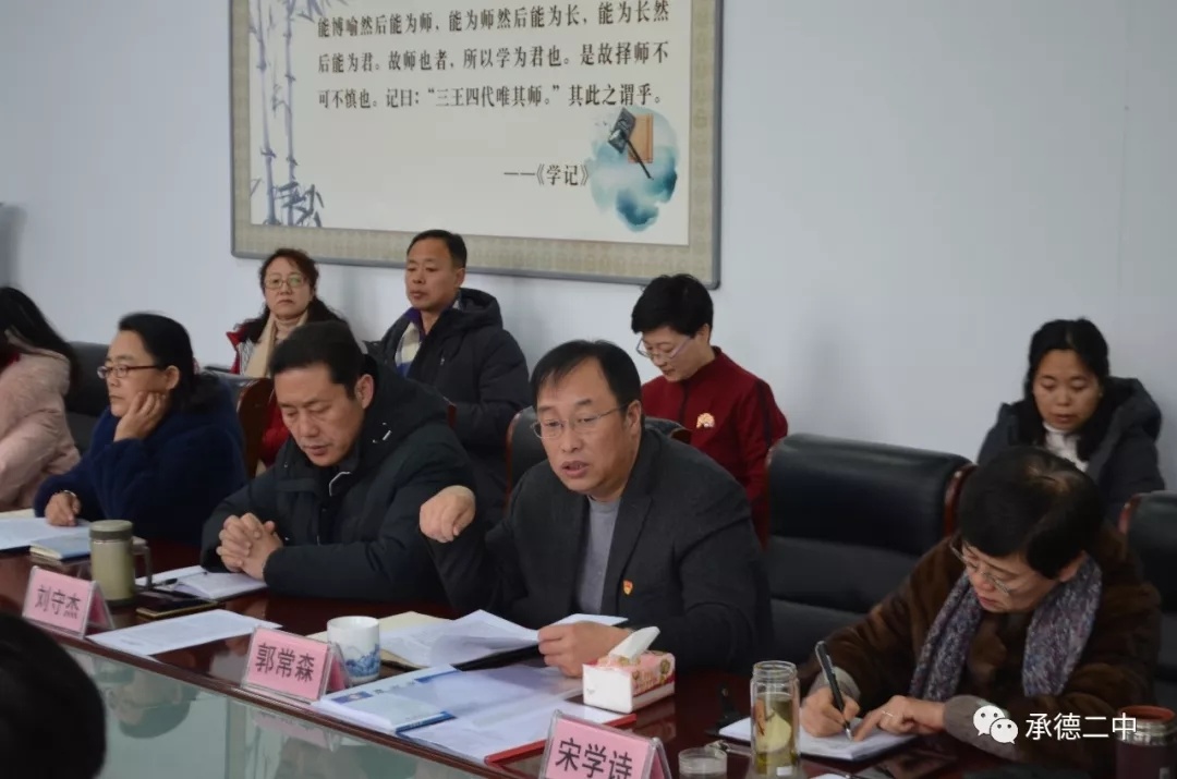 校(xiào)長(cháng)郭常森(sēn)代表學校(xiào)領導班子(zǐ)做(zuò)了(le)自(zì)查自(zì)評報(bào)告,§校(xiào)長(cháng)回顧了(le)近(jìn)年(nián)來(lái)承德二中領導班子(zǐ)團結帶領全校(xiào)教職工(gōng)₹在市(shì)委、市(shì)政府、市(shì)教育局堅強領導下(xià)所取得(de)的(de)突出辦學成績,并将近(jìn)年(nián)來(lái)在學校(xiào)管理(lǐ)、隊伍建設、開(kāi)放(fàng)合作(zuò)、教育教學、改革創¥新、存在問(wèn)題等方面的(de)情況分(fēn)六個(gè)部分(fēn)進行(xíng)了(le)彙報(bào)。